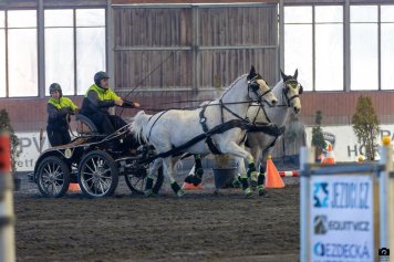 "Máme za sebou první dvě kola halového poháru 2025. První kolo se konalo již tradičně v Hradištku u Sadské 1.2. 2025, kde jsem se umístila v hobby soutěži dvojspřeží na 2. místě a Petr v pohárové soutěži dvojspřeží obsadil 3. příčku a bral 8 bodů. Druhé kolo se konalo premiérově v Equitana centru Martinice, kde jsem v hobby soutěži byla na 3. místě a Petr si polepšil a umístil se na 2. místě a bral dalších 9 bodů. "